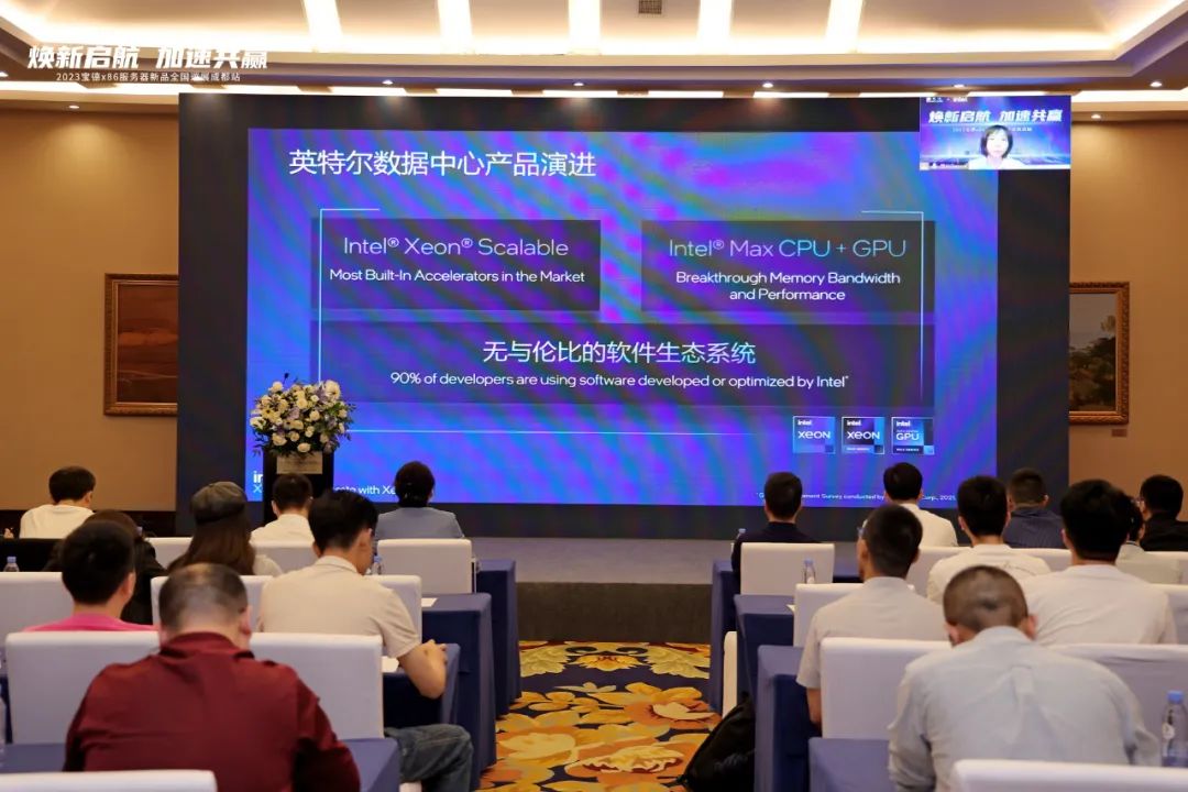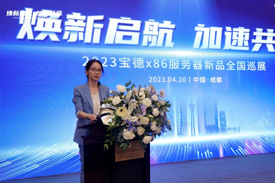 隨后,英特爾中國(guó)有限公司寶德客戶經(jīng)理吳琛通過(guò)線上發(fā)表致辭。她表示得益于各位客戶伙伴的信任和鼎力相助,2022年寶德x86業(yè)績(jī)依然逆勢(shì)猛增,再創(chuàng)新高。英特爾始終根植客戶,持續(xù)創(chuàng)新,致力于為寶德等OEM伙伴提供更好的產(chǎn)品和服務(wù)。尤其今年推出的新品——第四代至強(qiáng)®可擴(kuò)展處理器更是因其卓越的性能被稱贊為“六邊形戰(zhàn)士”。當(dāng)前數(shù)字化轉(zhuǎn)型加速推進(jìn),帶來(lái)了大量的市場(chǎng)機(jī)遇。面向未來(lái),英特爾將繼續(xù)攜手寶德,以及更廣泛的合作伙伴,共同把握數(shù)字化轉(zhuǎn)型加速推進(jìn)的戰(zhàn)略機(jī)遇,賦能數(shù)字經(jīng)濟(jì)高質(zhì)量發(fā)展。