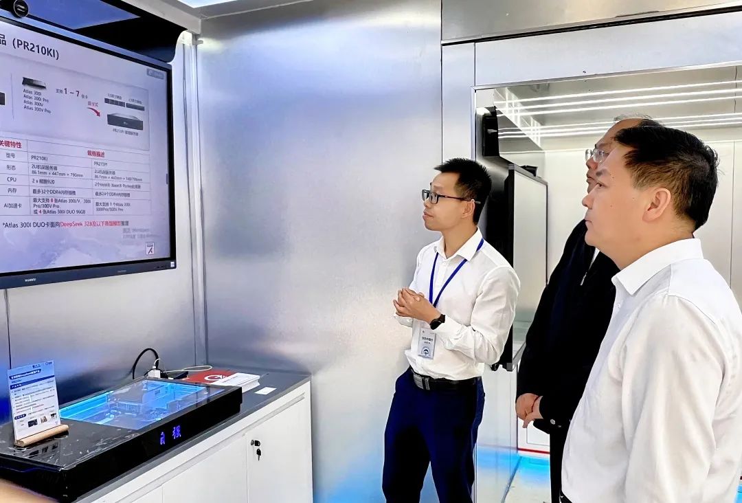 活動現場,寶德展區吸引了眾多行業客戶駐足交流。寶德重點展示的自強®昇騰AI Deepseek一體機PR210KI憑借自主安全、超強算力與高效能表現在會上備受關注。它集鯤鵬處理器的強大性能和8張昇騰AI加速卡的強大算力于一體,最大限度地提高多線程應用的并發執行能力,為AI大模型訓練提供堅實有力的算力支撐。它還具有多核、低功耗優勢,為推理場景搭建了低功耗和高能源效率的計算平臺,非常適合DeepSeek 32B及以下蒸餾模型推理。