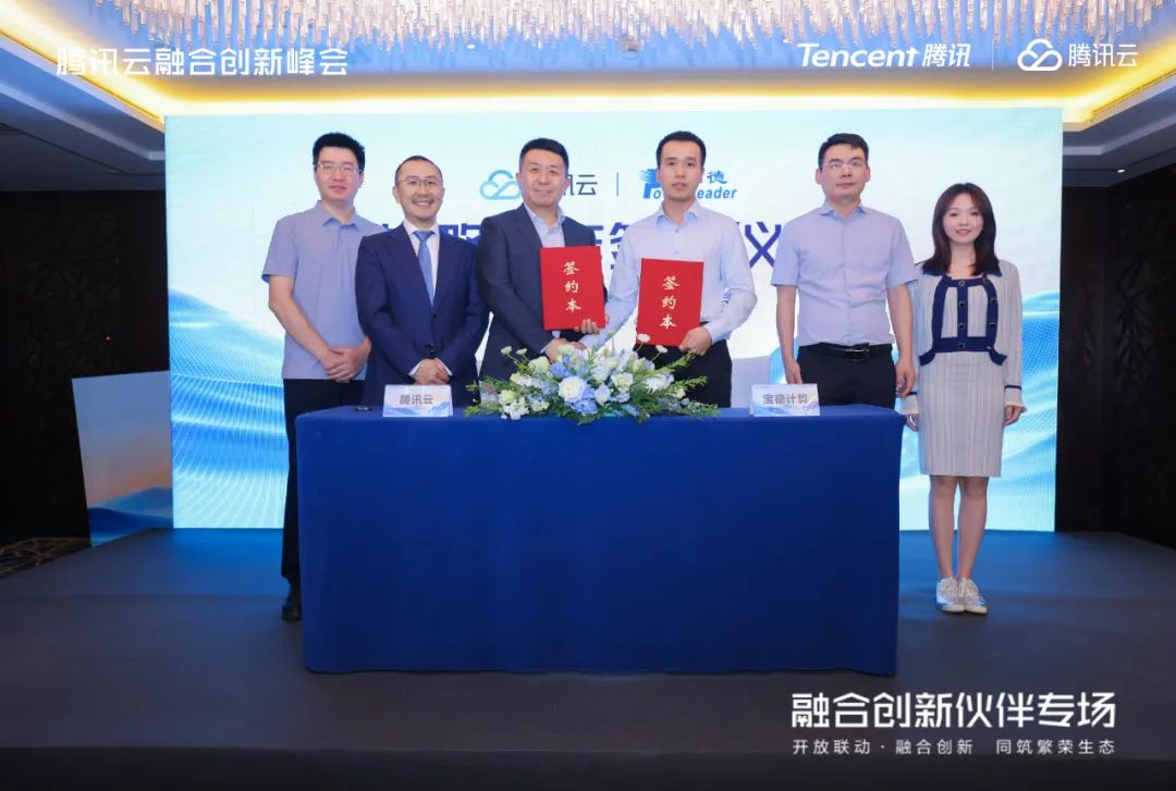 在融合創新專場會議上,寶德計算與騰訊云正式簽署戰略合作協議。雙方宣布,將基于騰訊自研操作系統TencentOS與寶德自強®系列國產服務器,聯合推出軟硬一體化的融合創新解決方案,共同推動國產計算能力向“好用“和”易用”發展。雙方將通過技術聯調,在多芯片架構適配、系統安全性增強、算力性能優化等領域展開合作,共同致力于加速融合創新產品在各行業核心業務場景的規?;涞?,為中國數字經濟發展注入新動能。