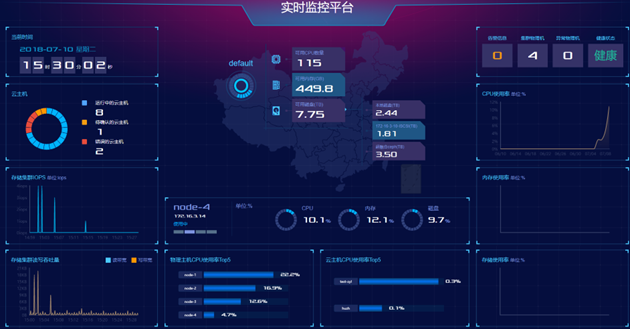 支持大屏監控能力,通過PLCloud云管平臺在一個頁面來展示當前平臺及多個平臺資源狀態顯示,使得日常使用及運維更加得心應手。